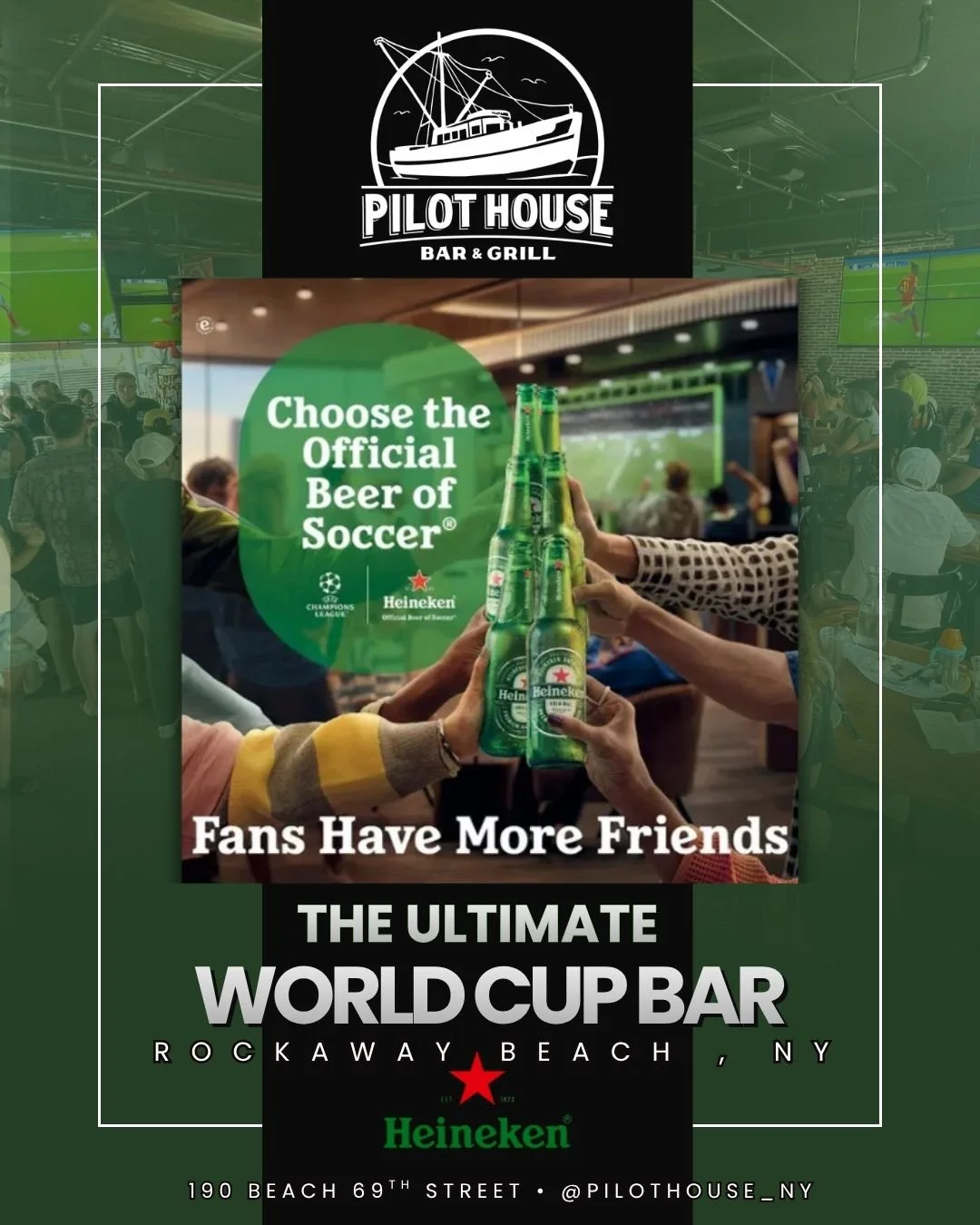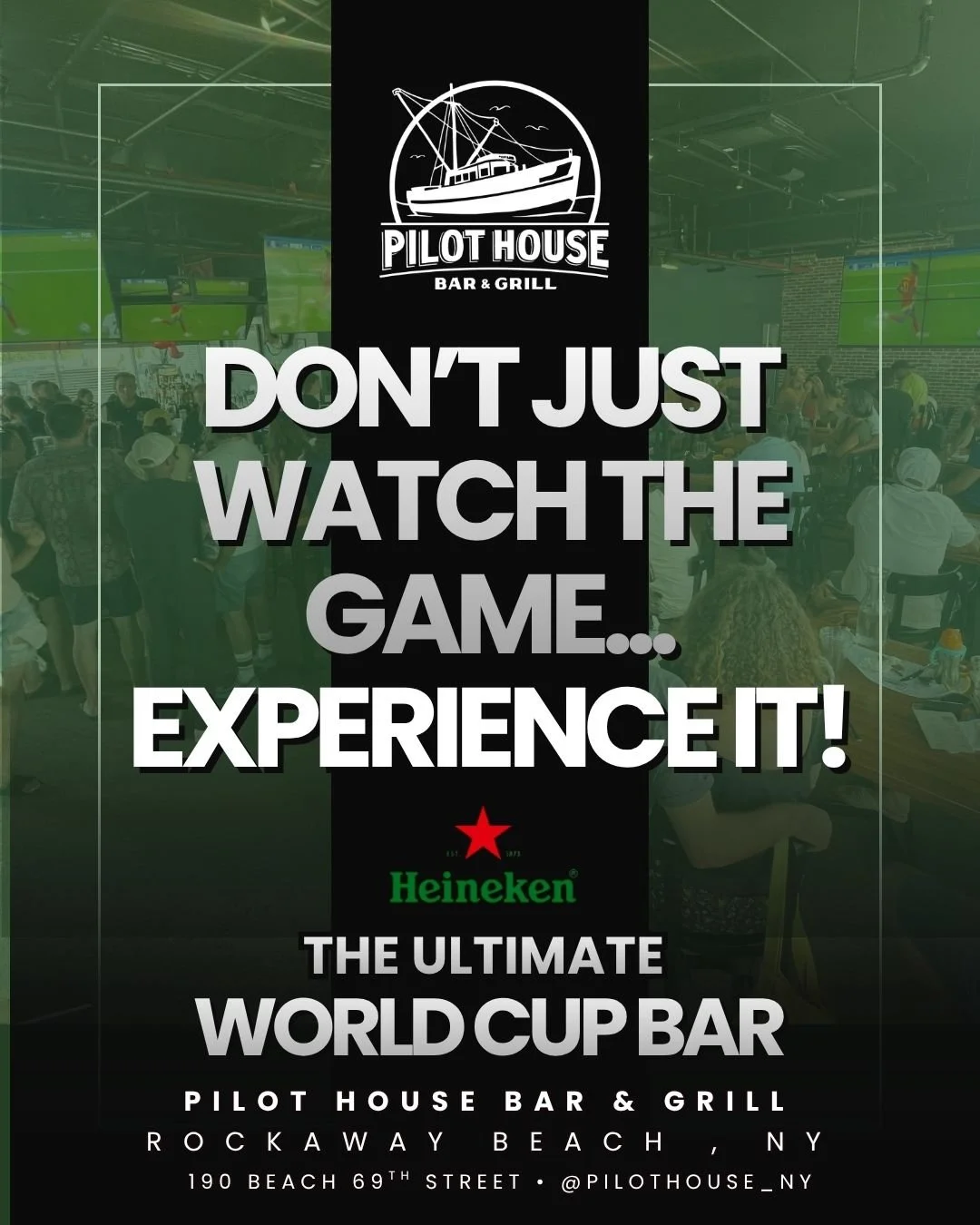 Looking for a World Cup bar in NYC? Pilot House Bar & Grill in Rockaway Beach is your home for every FIFA World Cup 2026 match — shown live with sound on our wall-to-wall TVs.