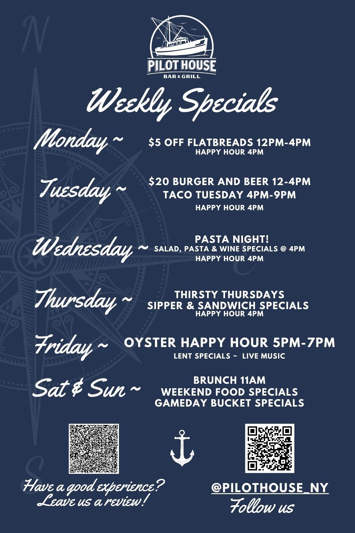 Pilot House Bar & Grill is Rockawayโs ultimate viewing experience for all of your favorite sporting events.